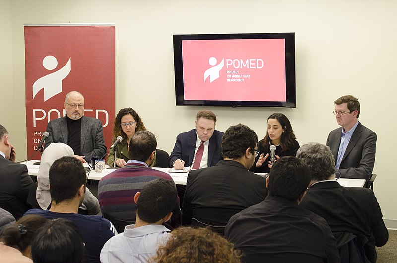 Khassoggi (bak til venstre) i var kommentator for Washington Post.