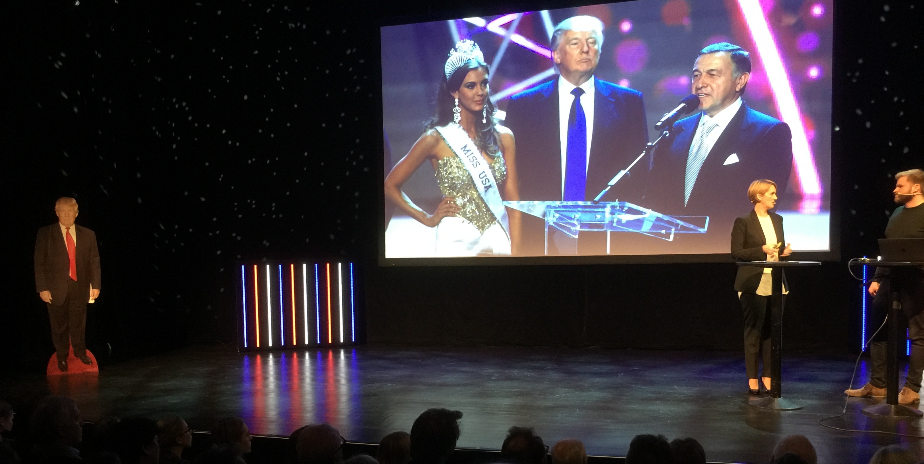 På Aftenpostens Trump-aften "Får han tre år til?" på Latter den 17/1, endte jeg i det klare mindretall som tror at Donald Trump blir felt før hans første fireårsperiode som president utløper. I Aftenposten dagen etter gjentar journalist Clare Malone noen av sine argumenter for at hun tror at Trump ikke kommer til å bli felt. (Foto fra Trump-seminaret på Latter, til høyre Christina Pletten og Tarjei Kramviken fra Aftenposten)